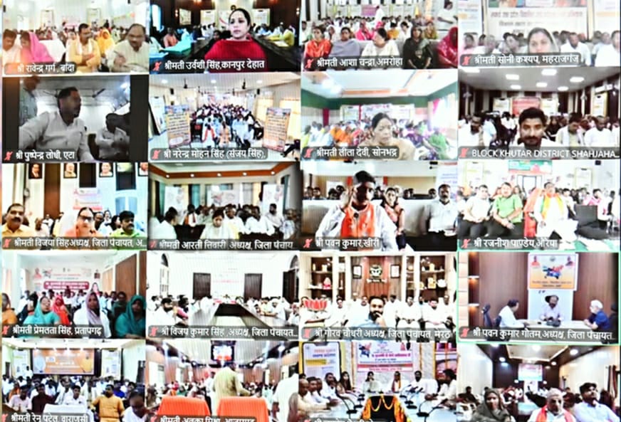 “विकसित उत्तरप्रदेशः @ 2047” इत्यस्य कार्यक्रमे पंचायतप्रतिनिधयः स्वविकासनवाचारान् मुख्यमंत्री योगी आदित्यनाथं प्रति प्रकटयामासुः।